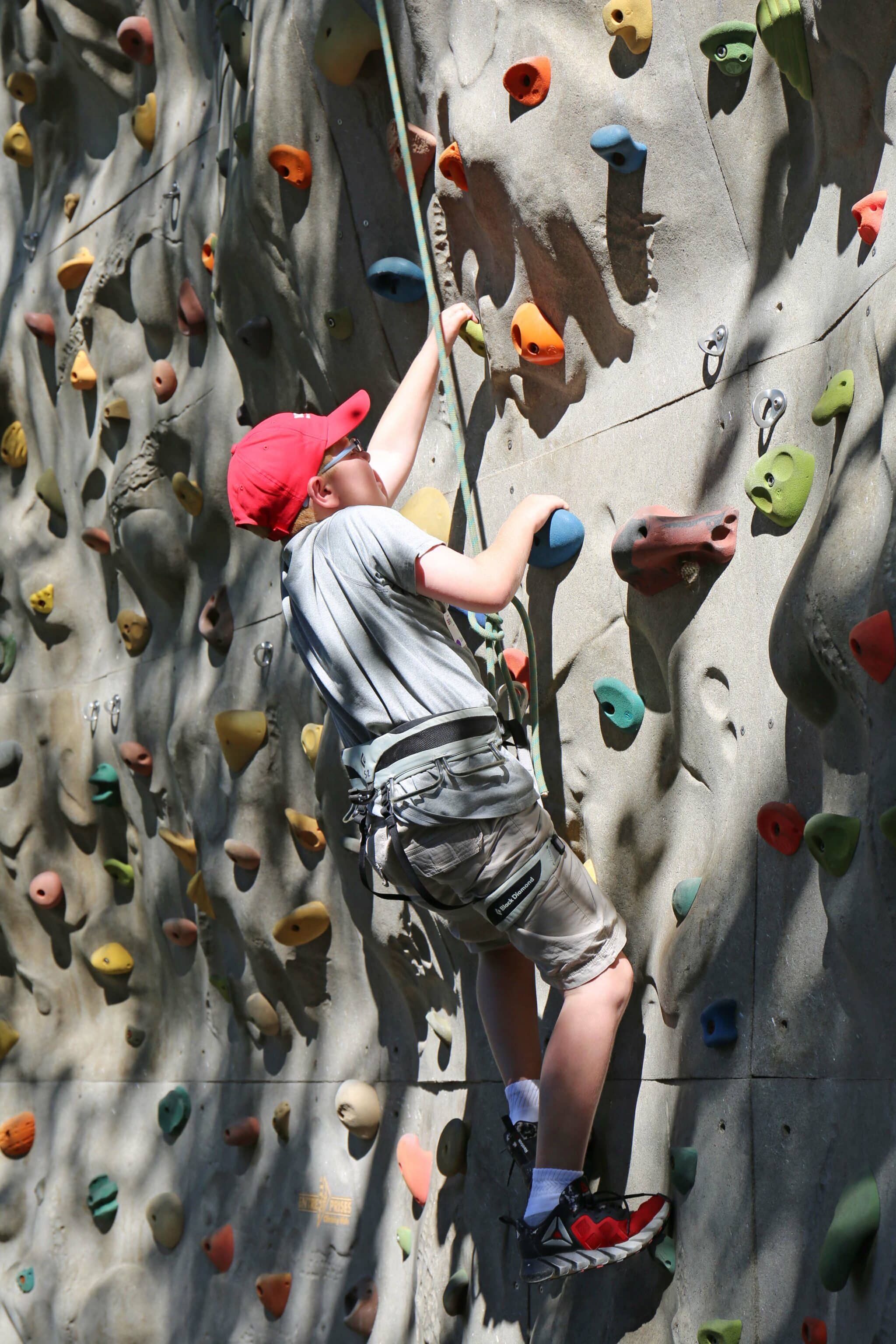Climbing wall – A student climbs HPU’s rock wall during the physical education component of HPU’s Summer Scholars and Young Scholars camps.