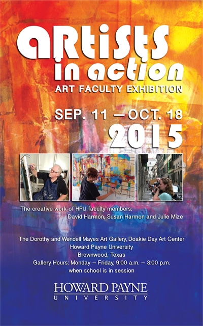 BROWNWOOD – August 28, 2015 – Works by Howard Payne University’s art faculty will be on exhibit in the Dorothy and Wendell Mayes Gallery of the university’s Doakie Day Art Center September 11 through October 18.