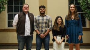 Students recognized were Vitória de Sales Biazi, a junior Bible major from São Paulo, Brazil; Brayden Folkers, a senior Christian education major with an emphasis in ministry leadership from College Station; Julie Ivy, a junior Christian education major with an emphasis in ministry leadership from Shiner; and Diondray Parker, a junior double majoring in youth ministry and kinesiology from Borger.