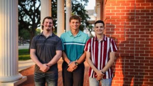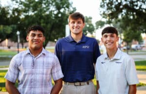 Cutline 1: HPU’s 2024 Homecoming King nominees are (from left to right) Peyton Lowe, Jack Shackelford and Trevor Bowers.