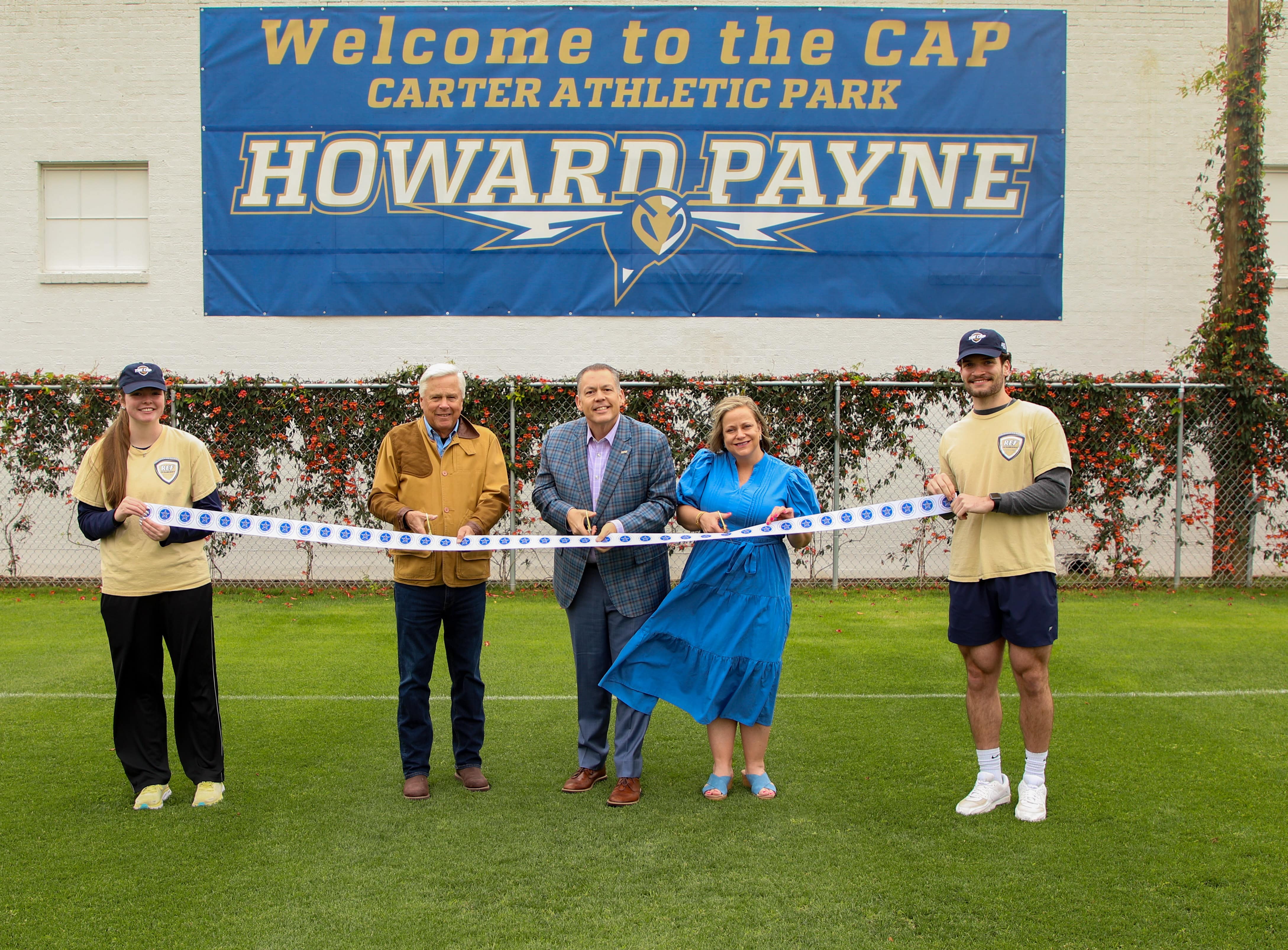 BROWNWOOD – April 7, 2025 – Howard Payne University dedicated the new Bob Carter Athletic Park (CAP) during a ceremony on Saturday, April 5. HPU alumnus Bob Carter and his wife, Tammy, gave the lead gift for the project. Bob Carter is a 1973 alumnus and CEO and founder of Lion Street insurance firm. The CAP will be used for intramural sports on campus, providing a beautiful spot within walking distance of the residence halls.