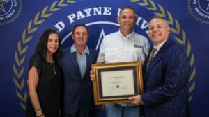 BROWNWOOD – May 21, 2024 – Howard Payne University recently recognized members of faculty and staff at an annual personnel luncheon held on campus. Scott Owen, assistant professor of kinesiology, department chair and director of the Wellness Center, received the Outstanding Faculty Member Award. Roger Dewell, director of facilities, received the Outstanding Staff Member Award. The outstanding faculty and staff awards are made possible by Underwood’s Cafeteria and Porter Insurance Agency, respectively.