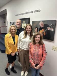 Cutline 3: Pictured in front of the Hildebrand-Jackson Recording Studio from left to right are Heidi Sterling, Mike Hildebrand, HPU junior Rylee McAlexander and Jill (Jackson) Landon.