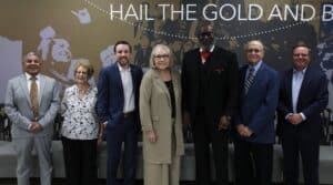 Also honored at halftime were HPU’s 2025 alumni honorees: Trey Oakley ’99, Distinguished Alumnus; Marshal McIntosh ’15 and MBA ’16, Outstanding Young Graduate; Dr. Donnie Auvenshine ’75, Medal of Service; Tim Whetstone ’85, Grand Marshal; Joanne (Cunningham) Crawford ’65, Coming Home Queen; Rev. Salome Guzman, Dr. José Rivas Distinguished Service Award; and Rev. Candy Smith ’71, JAM Faithful Servant Award.