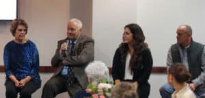 Cutline #1: Alumni share their passion for supporting HPU during a panel discussion at the Legacy Luncheon. Pictured are, from left, Sophia Faulkner ’70, Steve Faulkner ’72, Kriste Davis ’93 and Dr. Scott Davis ’91.