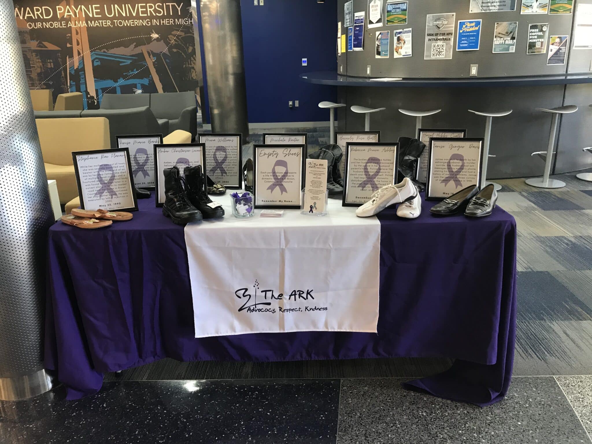 The vigil is held annually at HPU in October as part of National Domestic Violence Awareness Month. Featured each year is The ARK’s “Empty Shoes” display. Each pair of shoes represents a Central Texas individual who died as a result of domestic violence. According to information provided by The ARK, one in four women and one in seven men aged 18 and older in the United States have been the victim of severe physical violence by an intimate partner. Additionally, each year, more than 12 million people in the United States are victims of rape, physical violence or stalking by an intimate partner.