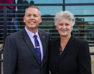 Cutline #3: Dr. Cory Hines, HPU president, congratulates Dr. Cynthia Ferguson, assistant vice president for HPU’s New Braunfels Center, on the opening of the new location.