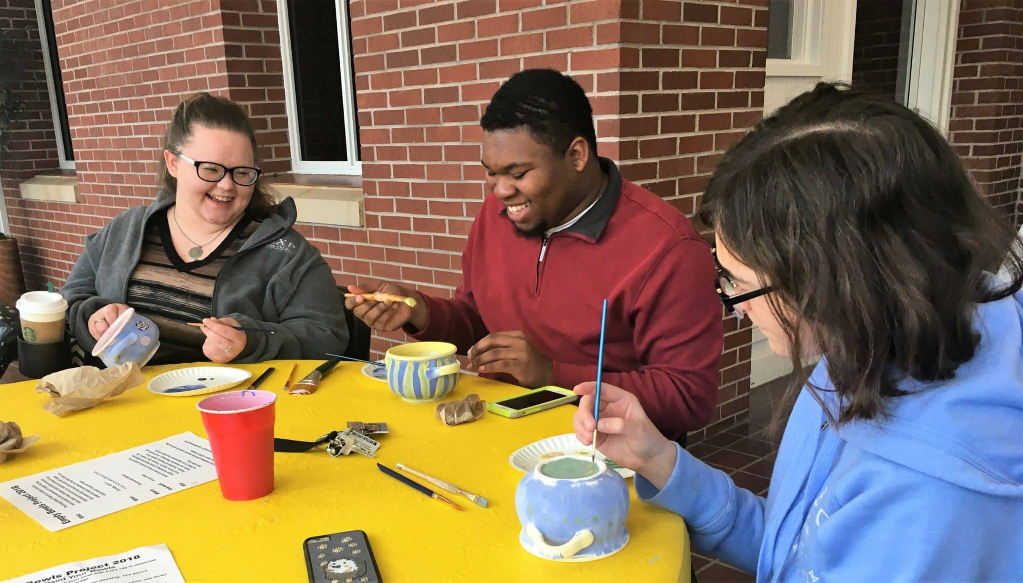 BROWNWOOD – February 28, 2018 – Howard Payne University’s Office of Student Life recently hosted employees and students for a bowl-painting activity for Good Samaritan Ministries’ Empty Bowls Project. The annual Empty Bowls event is slated to be held April 5 at the Brownwood Coliseum. Pictured from left is sophomore Lillie McDonald from Tuscola, senior Titus Brown from White Castle, Louisiana, and freshman Brooke Wischnewsky from Spring.