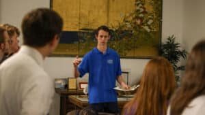 Cutline 2: HPU Sumners Scholar Layton Pratt led students on a tour through the Founders’ Library in the Douglas MacArthur Academy of Freedom.
