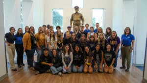 BROWNWOOD – September 20, 2024 – The Howard Payne University Sumners Scholars hosted two classes from Early High School in the Douglas MacArthur Academy of Freedom building on Friday, September 20. The campus visit was held in conjunction with Constitution Day, which was September 17. The students were from classes taught by HPU alumni Brittany Dunlap ’09 and Sidney Sisemore ’21.