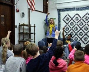 BROWNWOOD – November 15, 2012 – A group from Howard Payne University visited with third grade students at Brownwood’s East Elementary School on Thursday to discuss the importance of good grades and higher education. Shown demonstrating the university’s “sting ’em” cheer are HPU students Rebecca Lamar and Michael Ballejo.