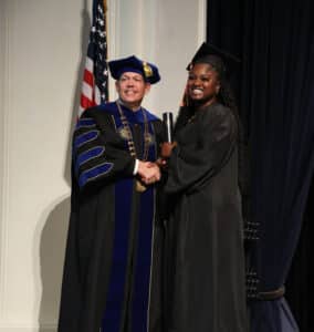 Cutline 5: Dr. Cory Hines, HPU president, poses for a photo with graduate Tiffany Davis.
