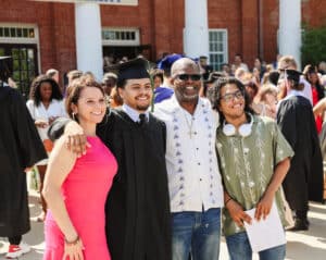 Cutline 6: HPU graduate and family celebrate outside of Mims Auditorium.
