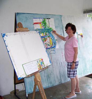 Susan Harmon is from Chicago, Illinois, and received her MFA degree from Georgia Southern University in Statesboro and two Bachelor of Fine Arts degrees from the School of the Art Institute of Chicago and the University of Illinois at Urbana-Champaign. She was recently honored to create a large public art commission mural for the convention center in San Marcos.