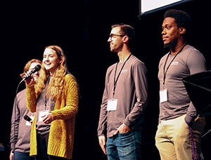 Cutline: Senior Emma Reed introduces members of the CASL committee at the 2019 CASL conference hosted by HPU.