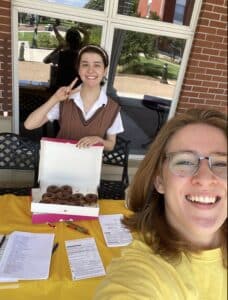 So after two weeks of preparation and planning they started their drive the last week of September. The drive ran from Monday, Sept. 23, to Thursday, Sept. 26. They had a booth outside of the Mabee Center and were set up every day of the drive for two hours.